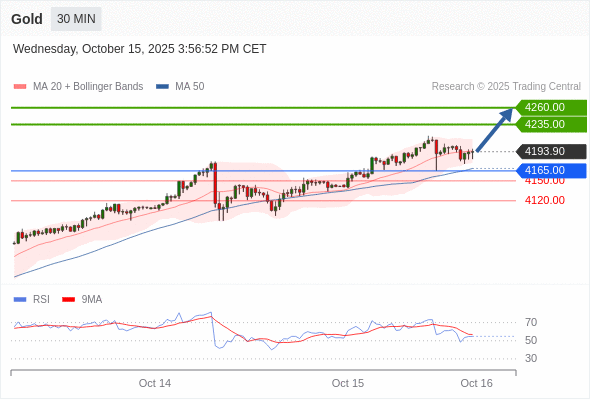 在 4165.00 之上,看涨,目标价位为 4235.00 ,然后为 4260.00 。