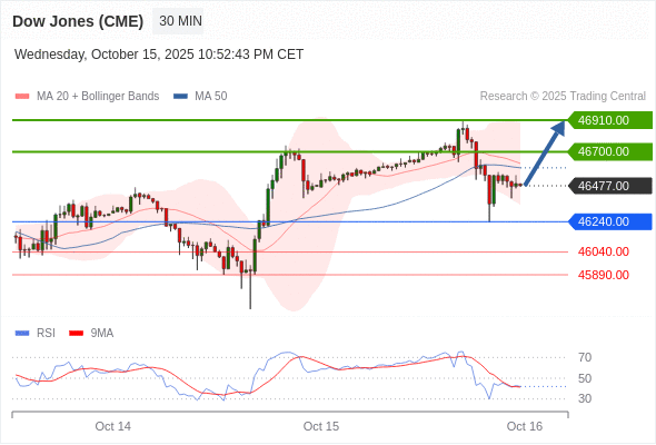 在 46240.00 之上,看涨,目标价位为 46700.00 ,然后为 46910.00 。