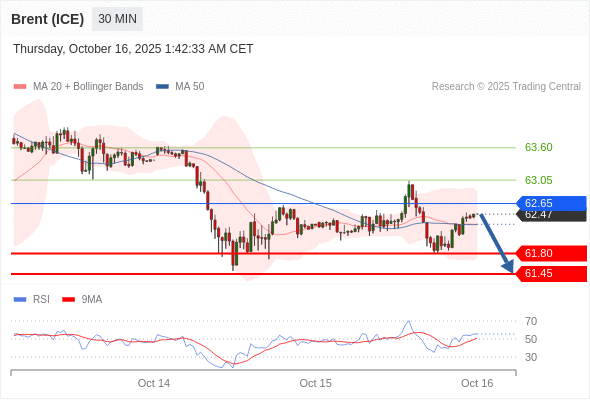 在 62.65 之下,看跌,目标价位为 61.80 ,然后为 61.45 。