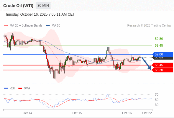 交易策略: 在 59.00 之下,看跌,目标价位为 58.45 ,然后为 58.20 。