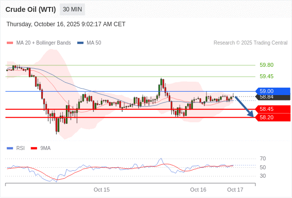 交易策略: 在 59.00 之下,看跌,目标价位为 58.45 ,然后为 58.20 。