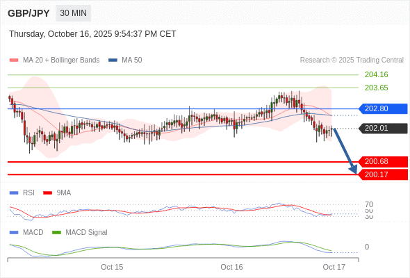 英镑/日元 当日内: 看跌,在 202.80 之下。