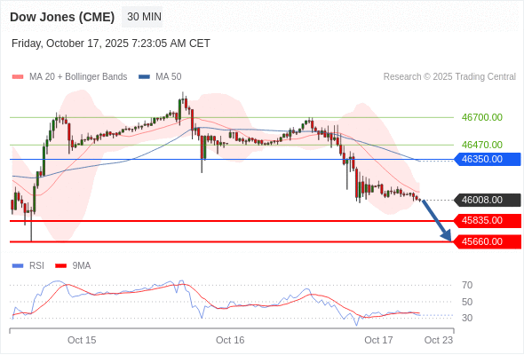 在 46350.00 之下,看跌,目标价位为 45835.00 ,然后为 45660.00 。