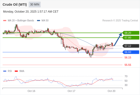 在 56.60 之上,看涨,目标价位为 57.80 ,然后为 58.20 。