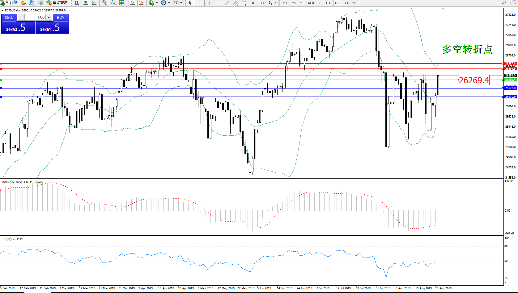 道琼斯指数829日(周四)收盘上涨326.20点,涨幅1.25%,报26362.25点。市场密切关注全球贸易局势发展及美国经济数据。美国经济第二季度增长放缓程度大于预期,因出口和库存等类别的数据较弱。尽管如此,消费者支出依然强劲,高于预期水平。关于贸易的利好消息让投资者希望重新回到一些股票市场,冒险意愿有所增强,对于GDP数据,虽然第二季度初值略有回落,但消费仍然看起来很强劲。这是关键。业绩方面也非常好,企业利润看起来很不错。