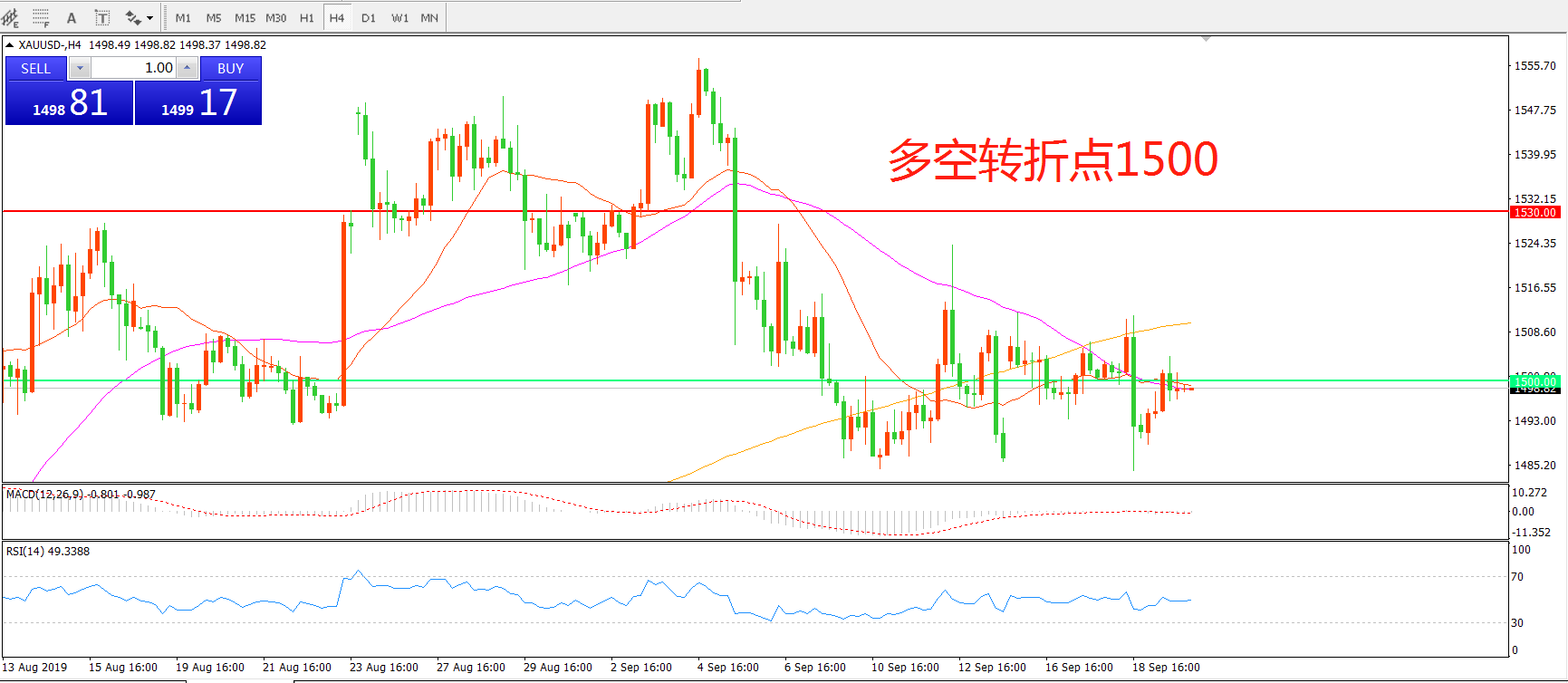 多空转折点:1500.00