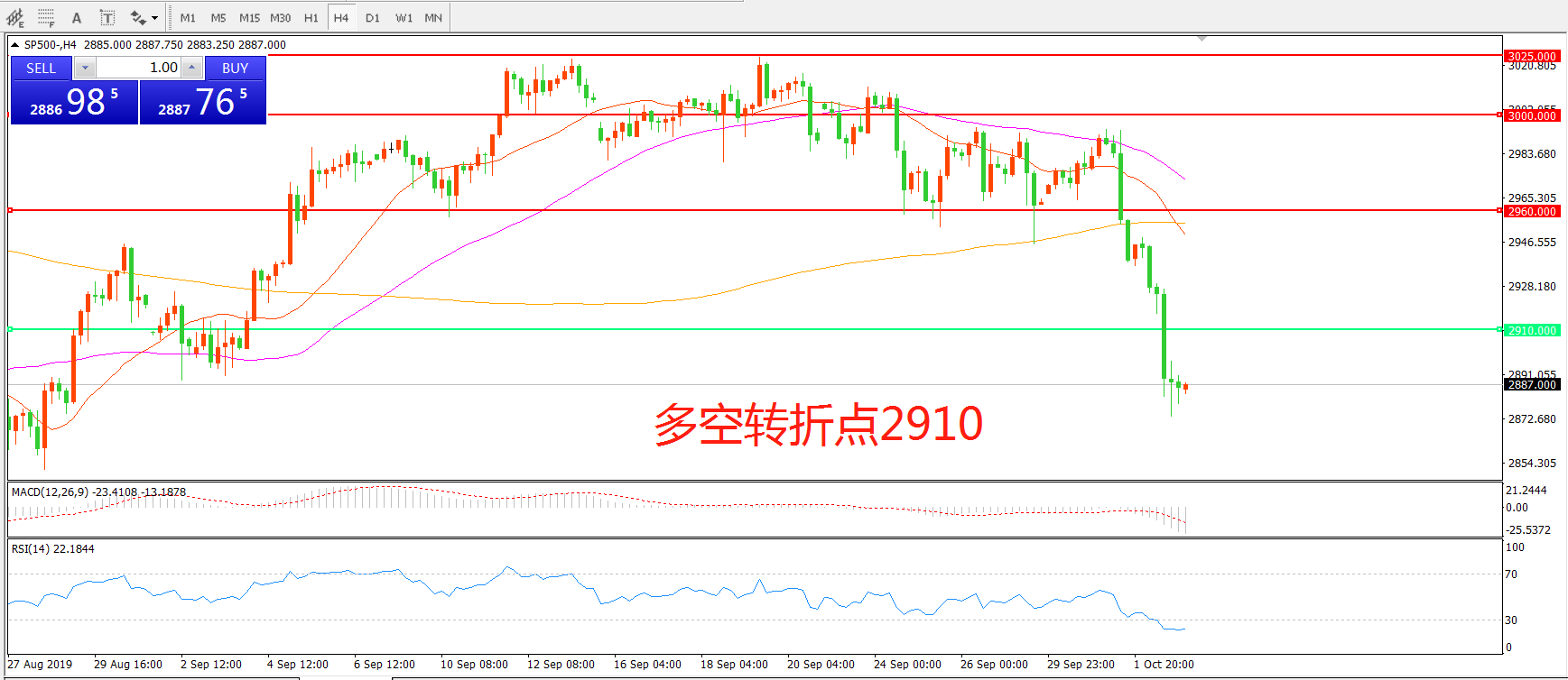 多空转折点:2910.00