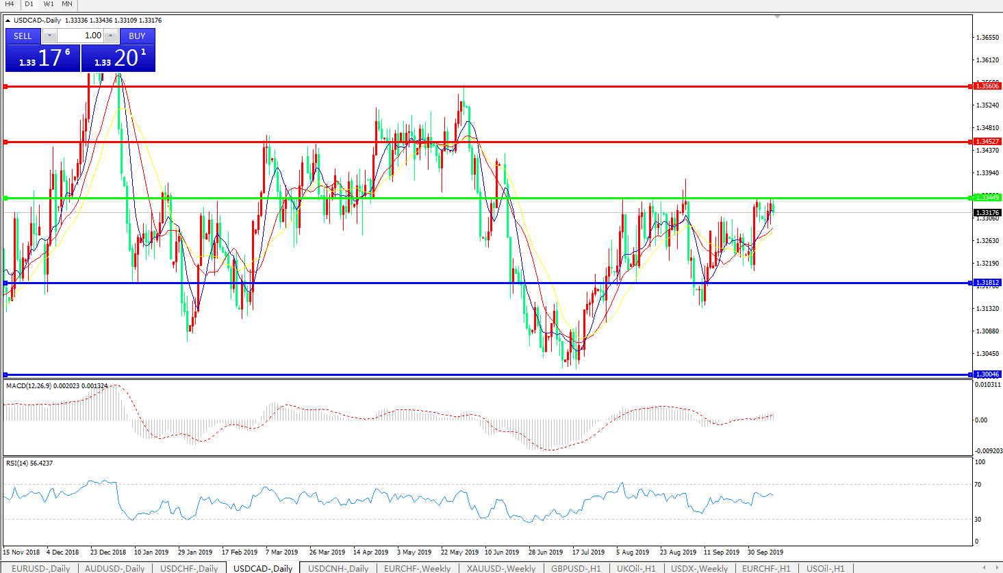 美元兑加元在周三欧洲时段一度下跌失守1.33关口,因日内再传中东地缘负面消息,导致国际油价持续走高,拉动产油国货币加元走强。不过,在纽约时段开盘时分,美元兑加元再度反弹,恢复强势表现;虽然有着油价坚挺加持,但是决定美加货币对走向的仍是美加两国经济及货币政策落差,因此,此后美联储的动向就尤为关键。美联储主席鲍威尔将在北美金融市场开盘后不久发表讲话,其基于最新数据对美国经济现况与未来的评估,对于汇市走势方向而言至关重要。之后,此前决议中就已经透露了鹰歌双方严重分歧的美联储,还将发布更详细的会议纪要来向公众袒露其意见走向; 在上述背景下,美元指数维持高位盘整,市场也缺少进一步做空美元兑加元的充足动力,而原油价格的反弹也并未令油价行情彻底走出下行趋势。综合上述因素,在美联储释放强力宽松消息之前,美元兑加元很难有太大的进一步下探空间。