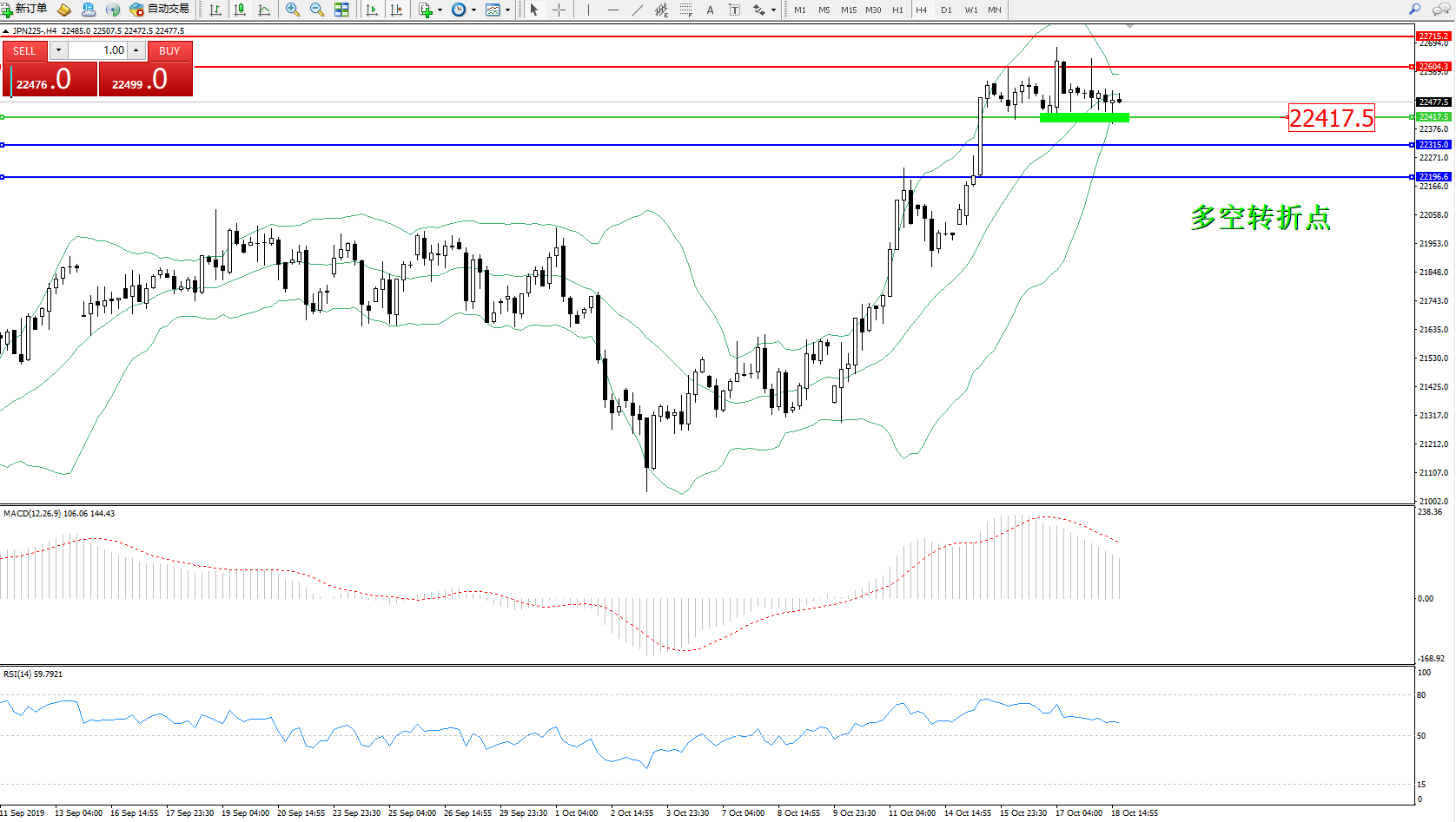 日经225指数1018日(周五)收盘上涨45.14点,涨幅0.20%,报22497.00点。日本财务大臣麻生太郎:全球经济在接下来一年将继续回温。但地缘政治等风险仍然较高。日本采取了措施来缓和消费税上调带来的效应。当前G20内部没有讨论采取集合行动来应对冲击。日本央行行长黑田东彦认为全球经济增速提高的时间可能延后的观点是正确的。日本经济面临的困难不能单由货币政策来应对,需要财政政策的配合。当日本需要经济支撑的时候,准备好灵活运用财政措施。