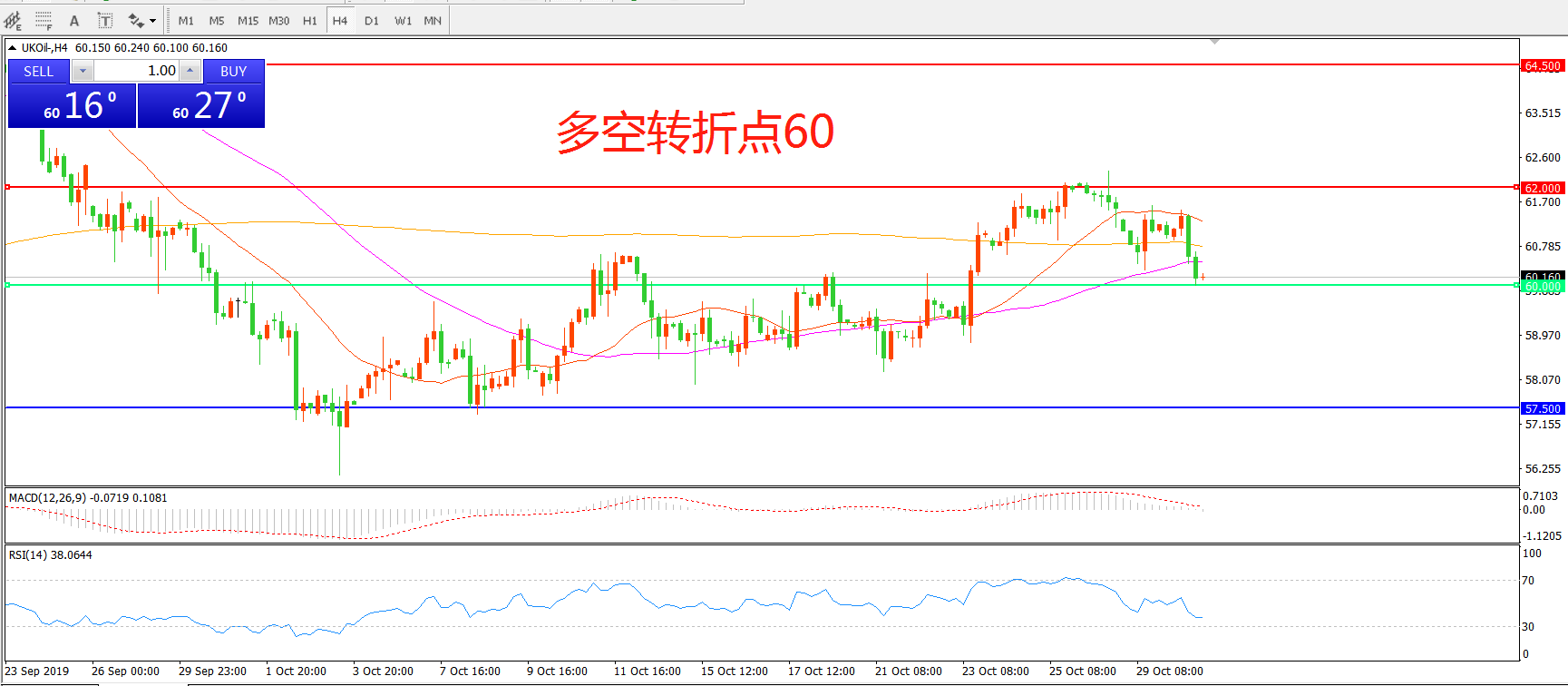 交易策略:在60.00之上看涨,目标62.00    64.50
