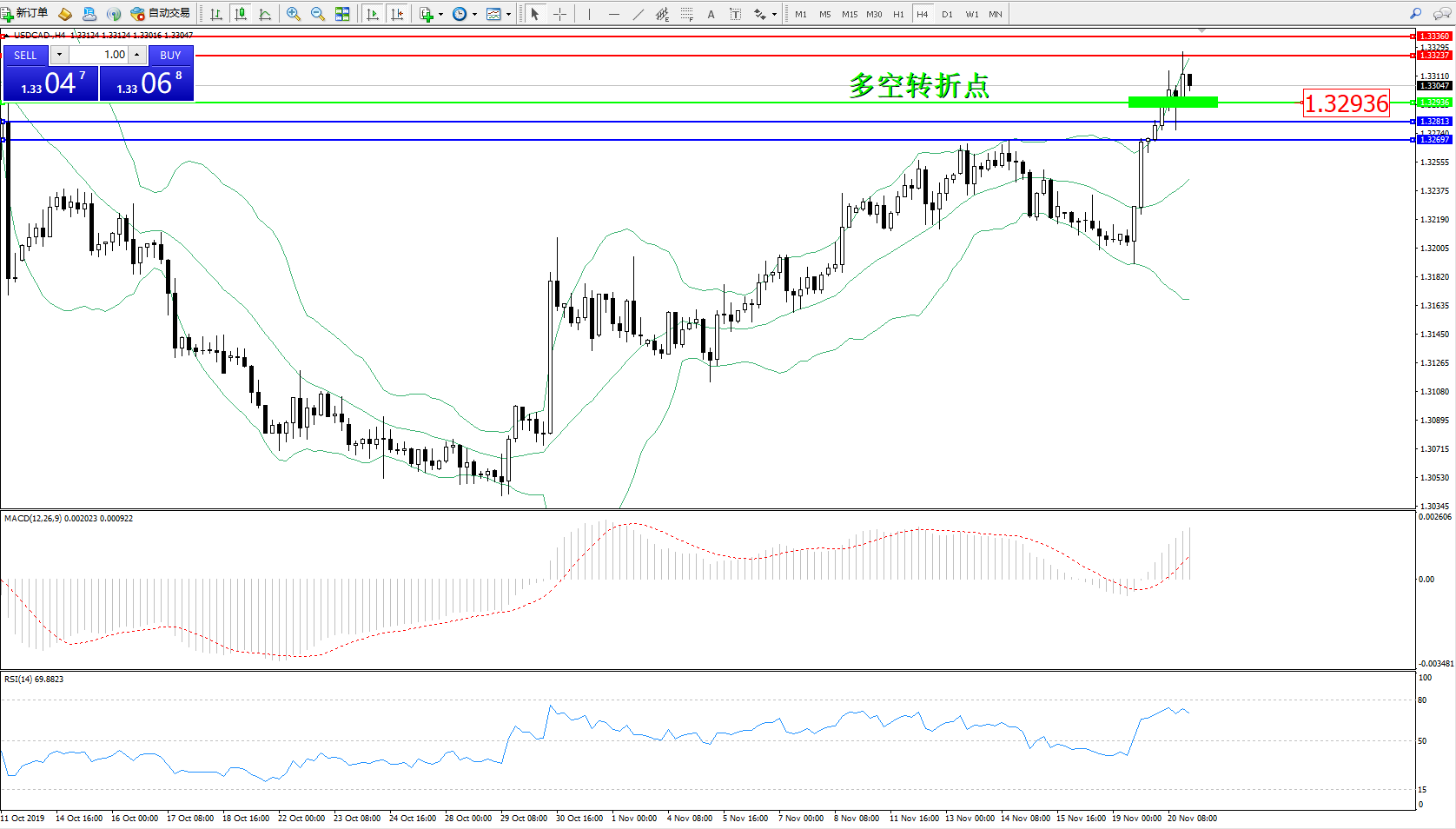 交易策略:1.32936上方看涨,目标1.33237、1.33360