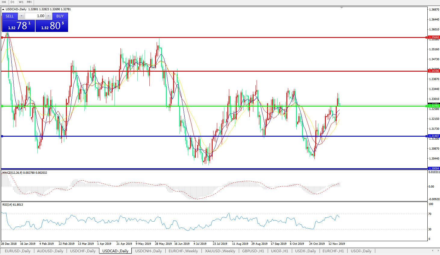 美元兑加元USDCAD 日线图: