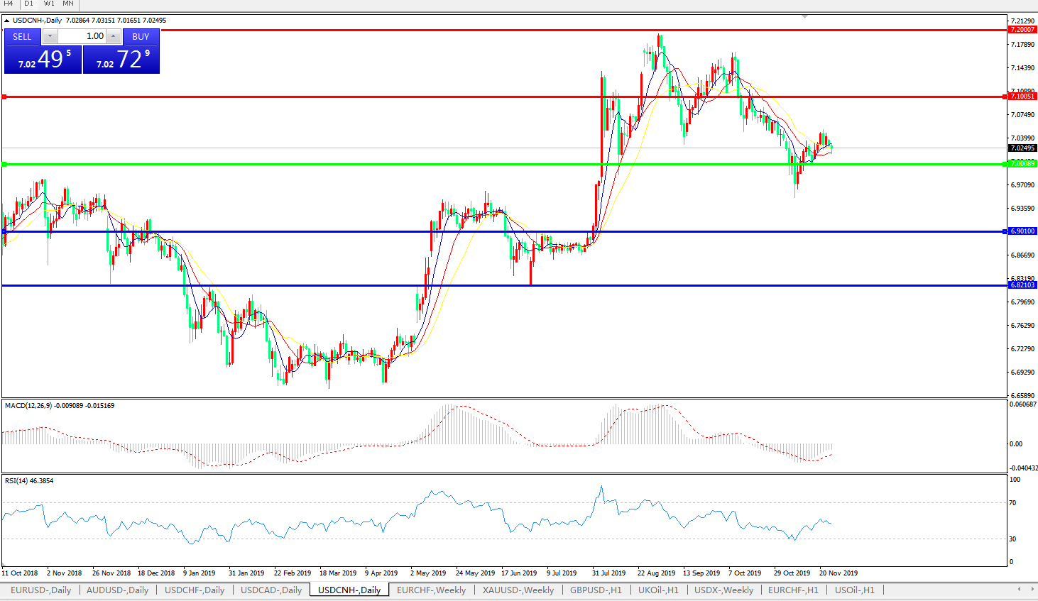 技术面简析:日图均线有逐步走出多头排列的迹象,汇价7.0关口上方窄幅整理,MACD运行于0轴下方且量能持续收缩,RSI维持整理态势,预计短期汇价将在7.0关口附近整理,中期汇价需等待美元指数及中美贸易谈判进展指引。
