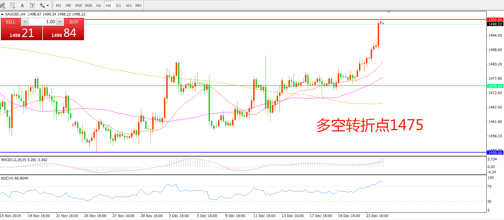 交易策略:在1475.00之上看涨,目标1500.00 1530.00
