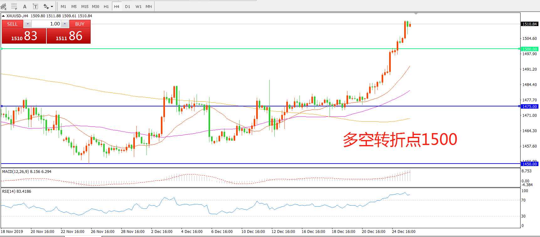 多空转折点:1500.00