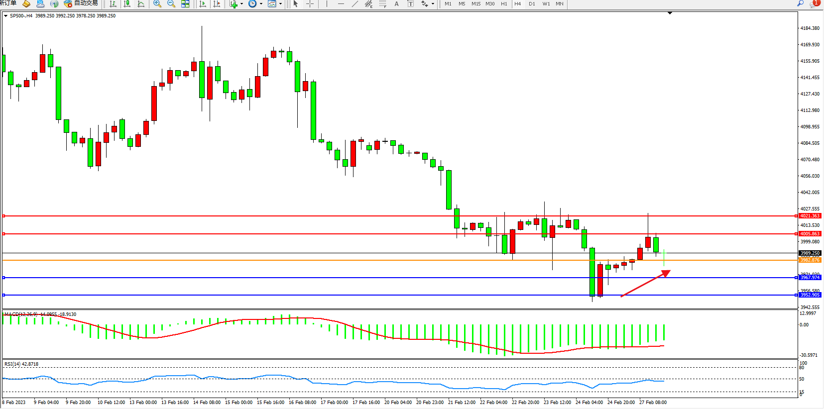 标普500指数2月27日(周一)收盘上涨12.58点,涨幅0.32%,报3982.62点;美国1月耐用品订单月率录得—4.5%,为2020年4月以来的最大降幅。核心资本货物订单价值在12月份下降0.3%后,上个月增长0.8%。