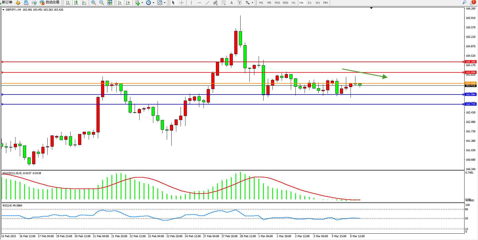 交易策略:163.500下方看跌,目标163.084 162.725