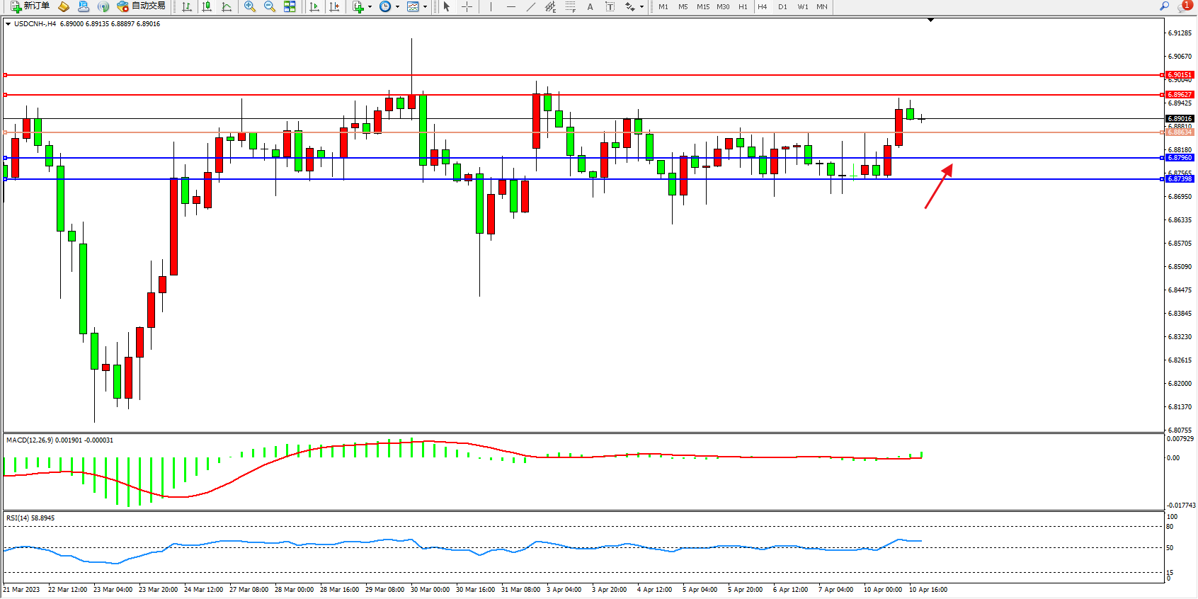 交易策略:6.88634上方看涨,目标6.89627  6.90151