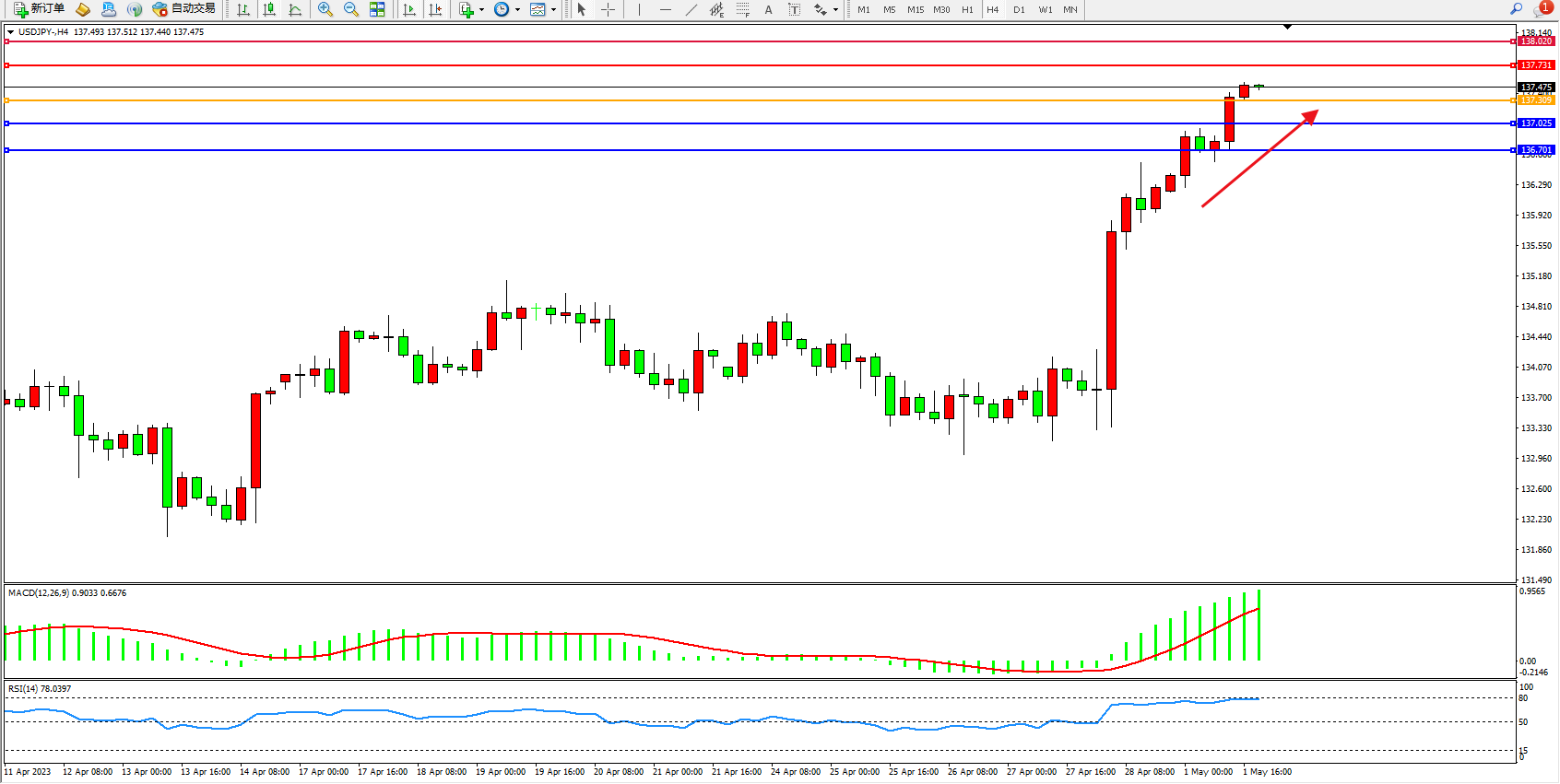 美元兑日圆维持137.475附近震荡,多头正准备迎接一段时间的疲软,直到市场再次押注日本央行将在6月或7月的会议上调整政策。在日本央行上周按兵不动后,日兑美元跌至两个月低点,期权显示,到7月底该货币对触及140的可能性为50—50。