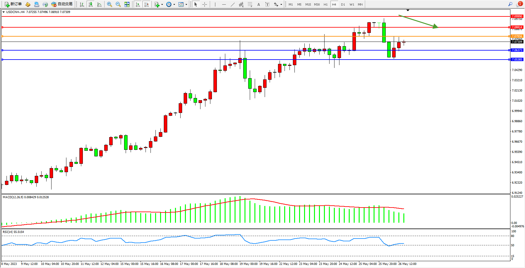 交易策略:7.07856下方看跌,目标7.06373 7.05385