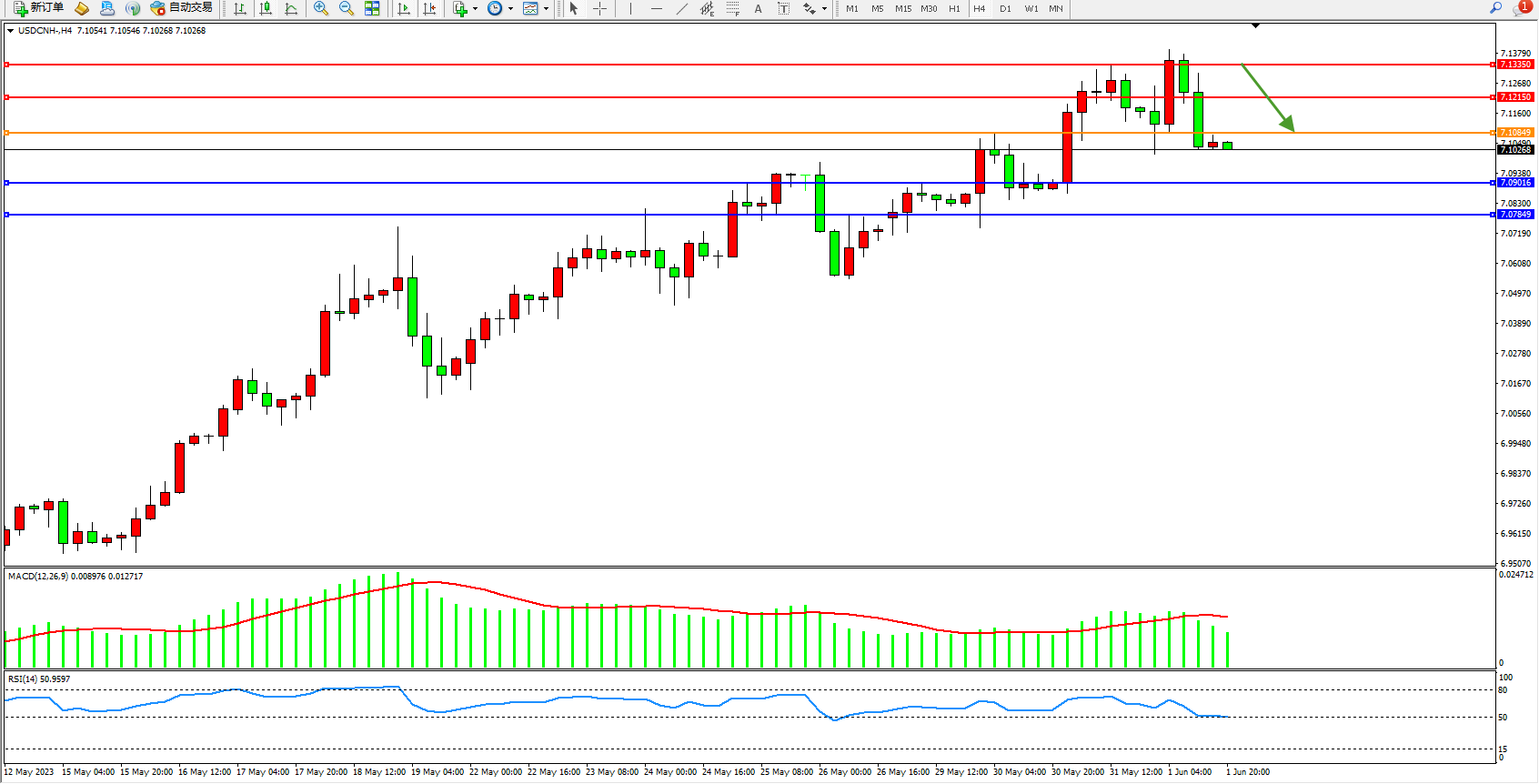 交易策略:7.10849下方看跌,目标7.09016 7.07849