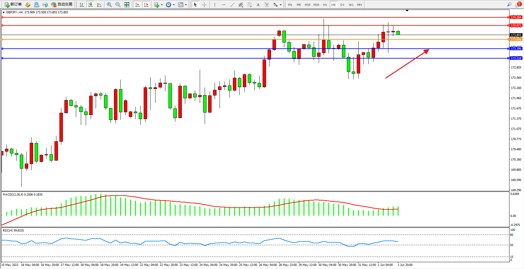 阻力位:174.071 174.304