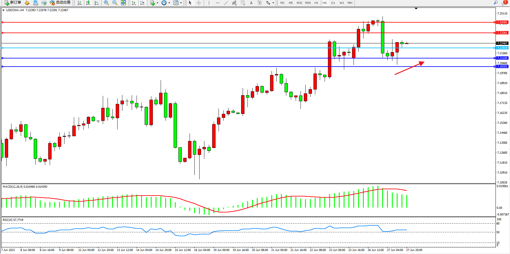 交易策略:7.22018上方看涨,目标7.23361  7.24301