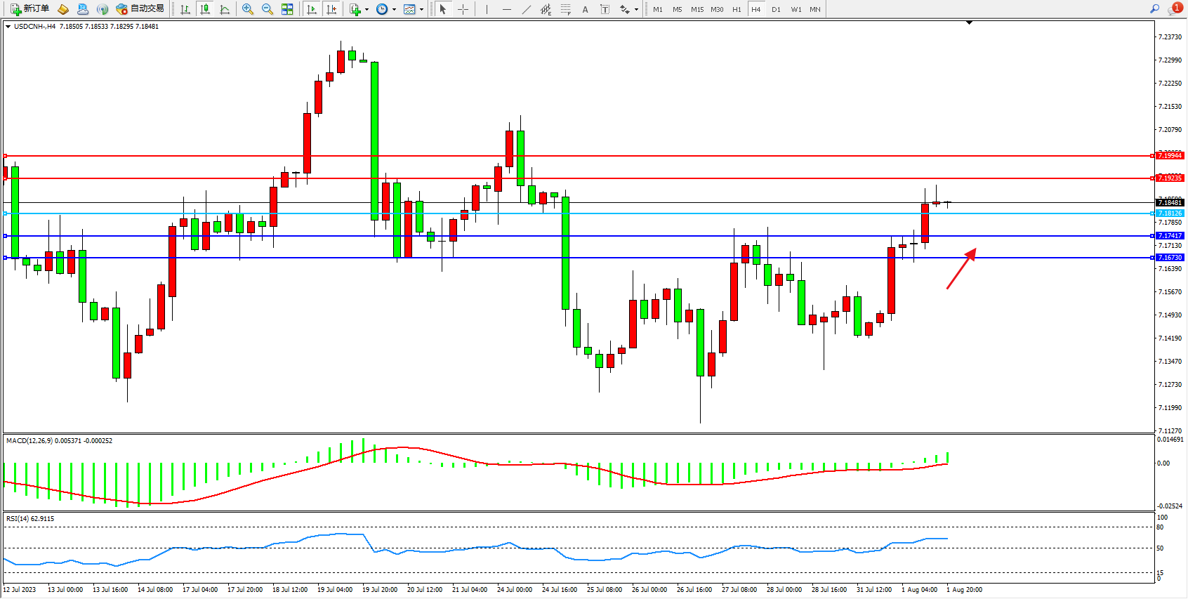 交易策略:7.18126上方看涨,目标7.19235 7.19944