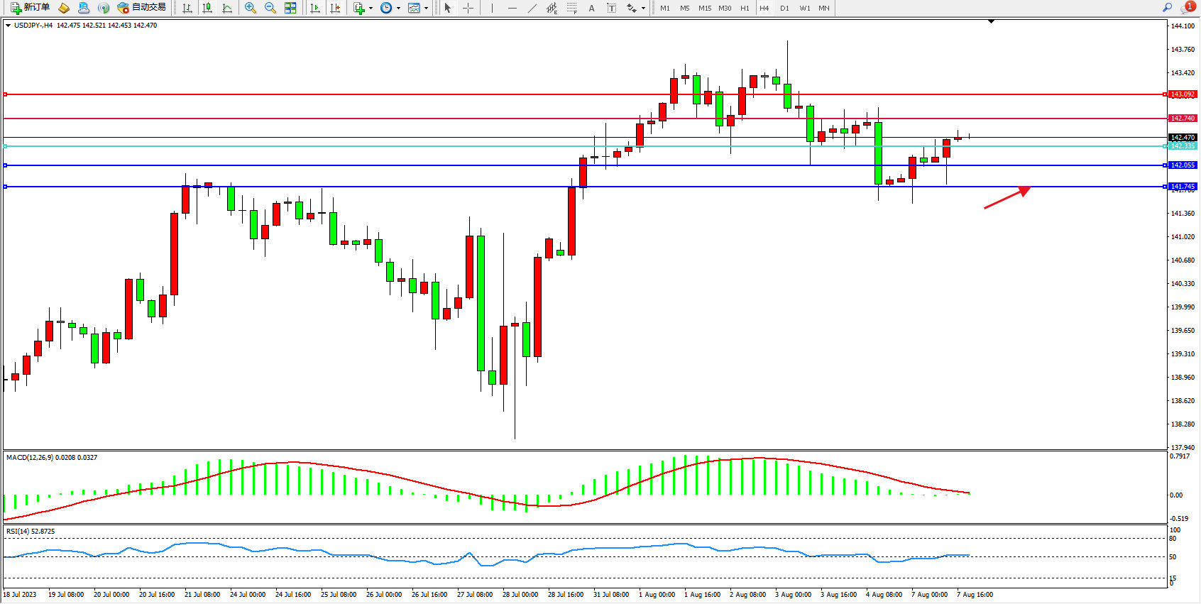 交易策略:142.335上方看涨,目标142.740 143.092
