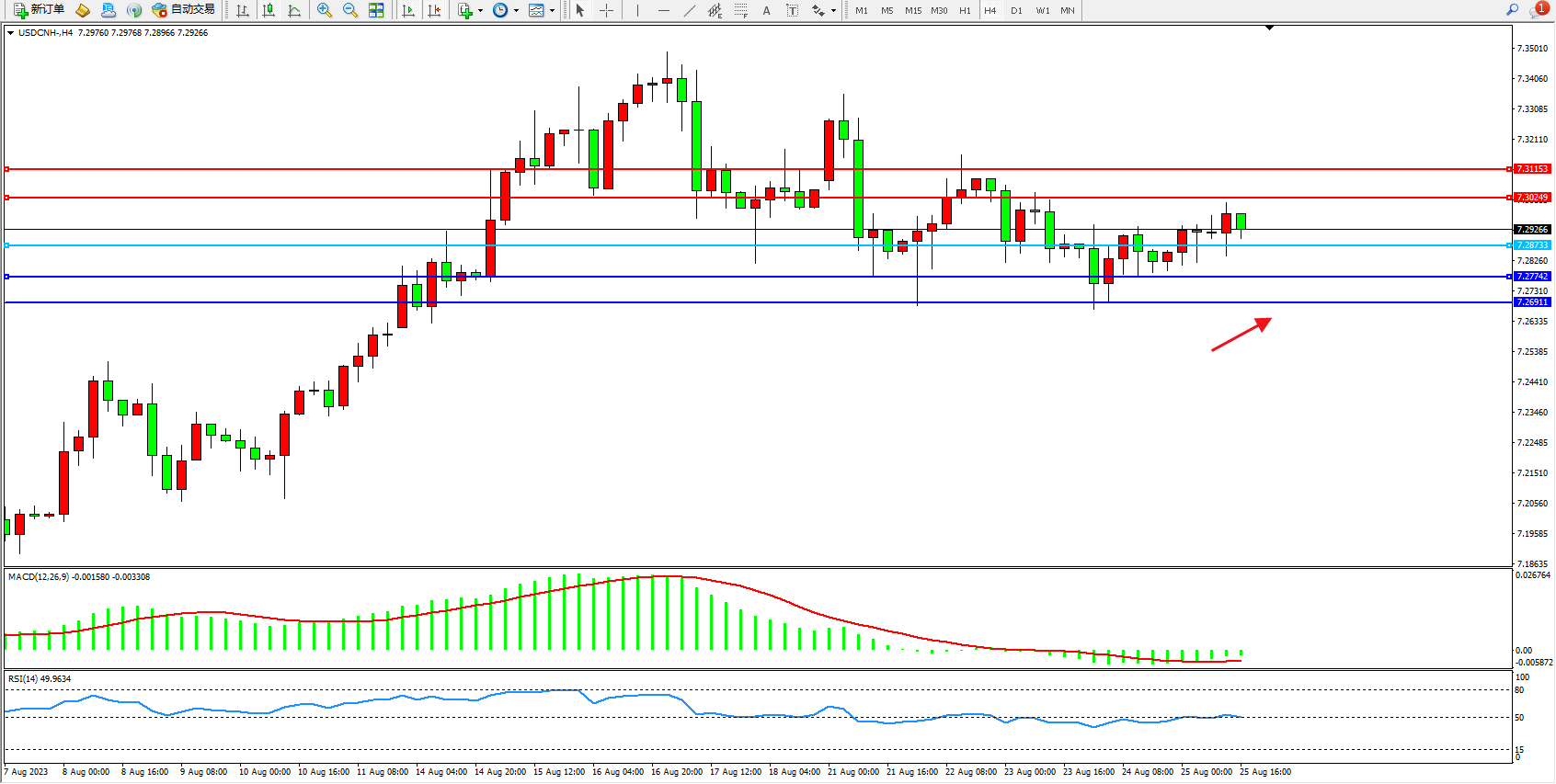 交易策略:7.28733上方看涨,目标7.30249 7.31153