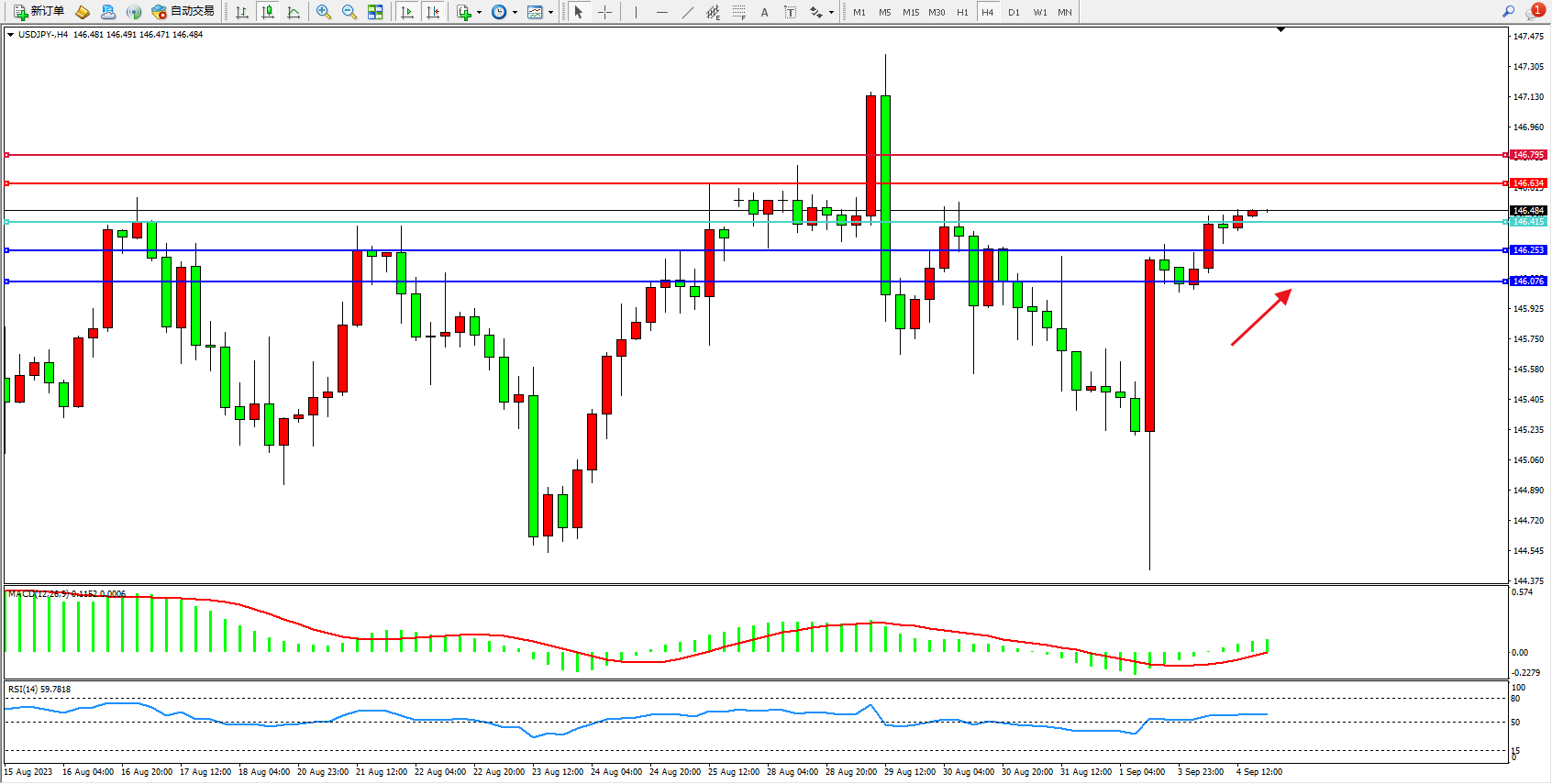 阻力位:146.634 146.795