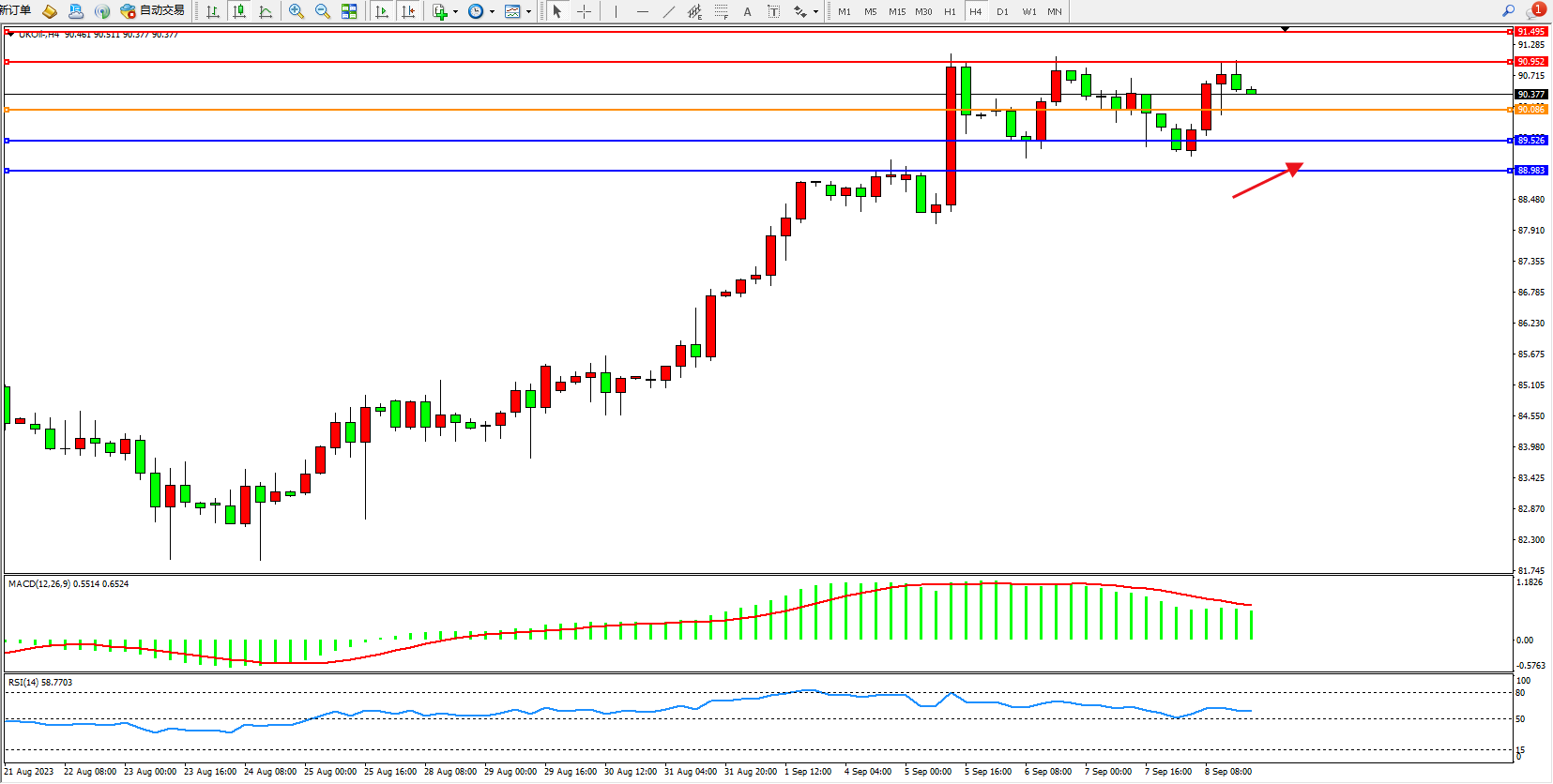交易策略:90.086上方看涨,目标90.952 91.495