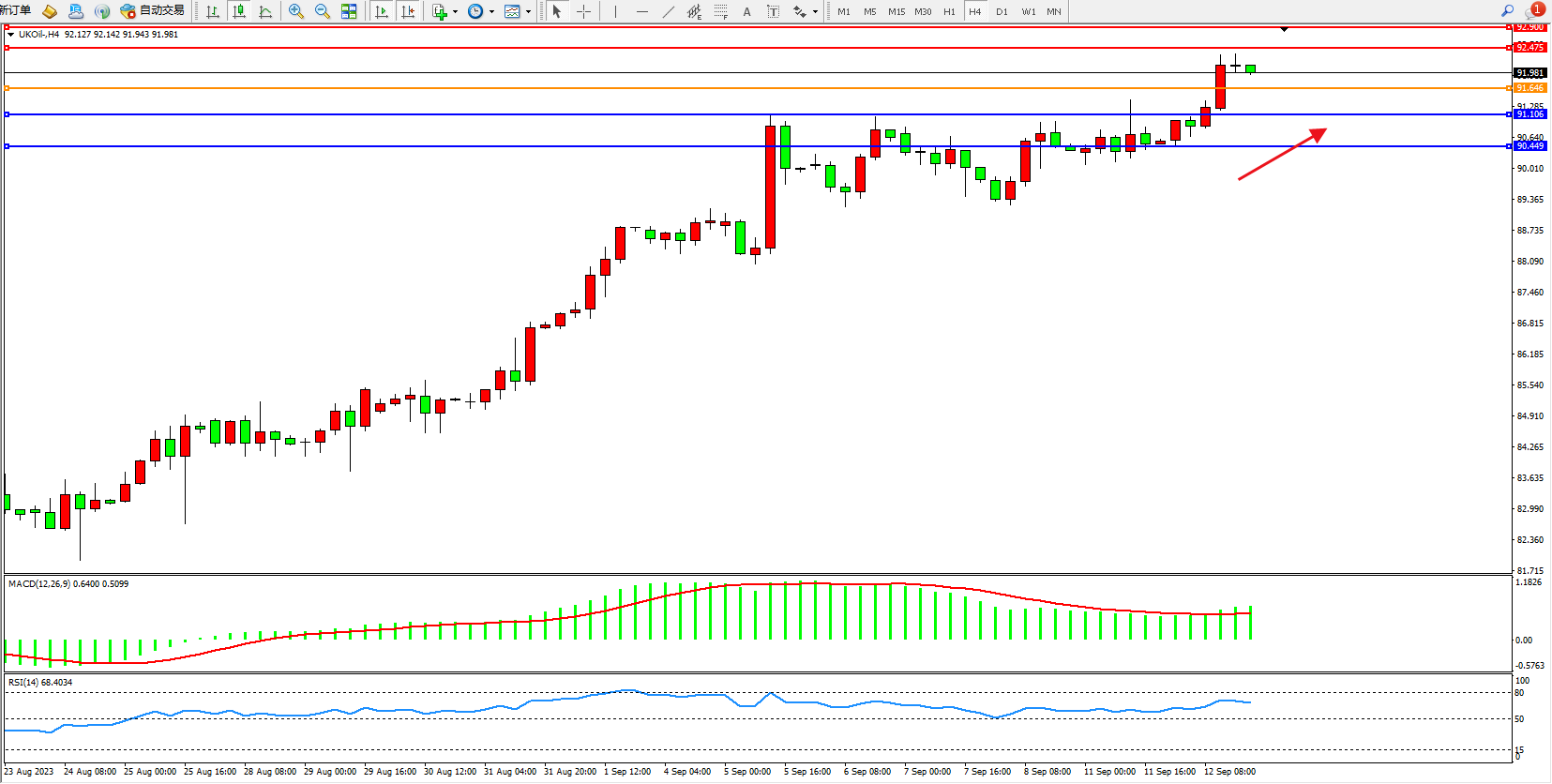 4小时图看:高位多头动力不断上扬,短期多头情绪涌现,市场多头不断攀升中,MACD指标处于多头区域维持整理,RSI指标处于多头区域维持震荡;