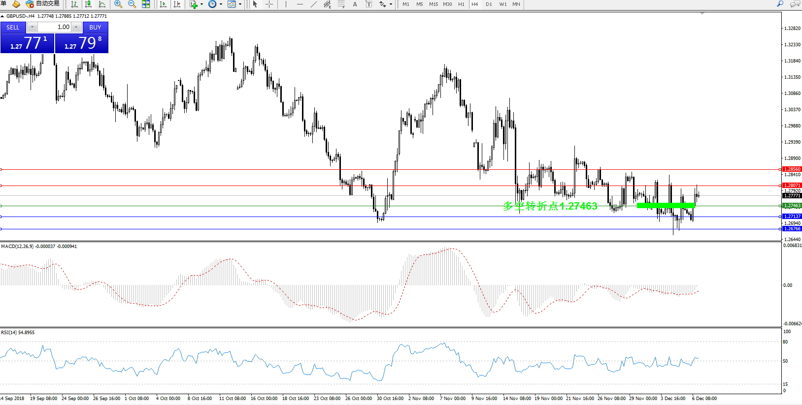 交易策略:1.27463上方看涨,目标1.28071、1.28560