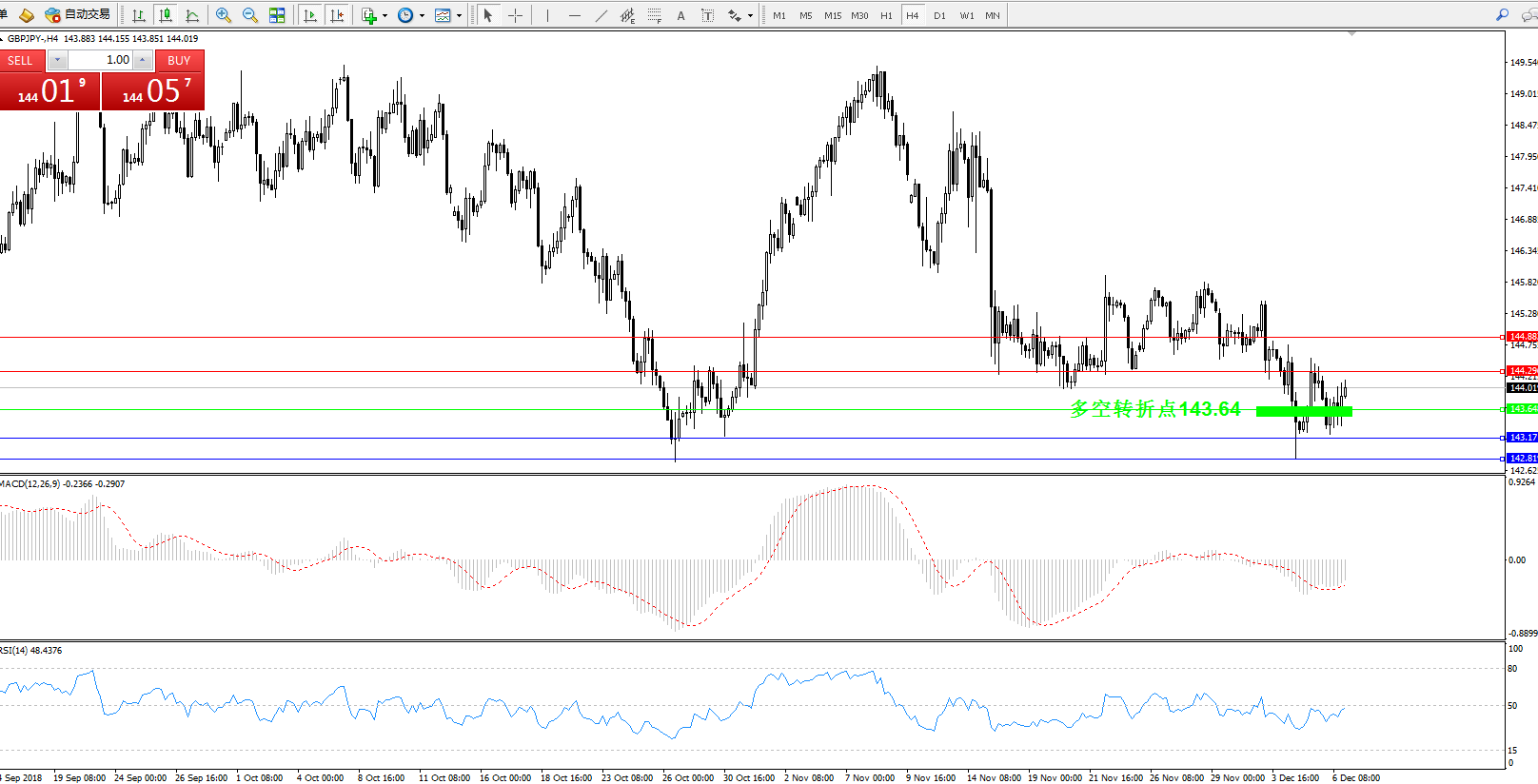 多空转折点:143.64