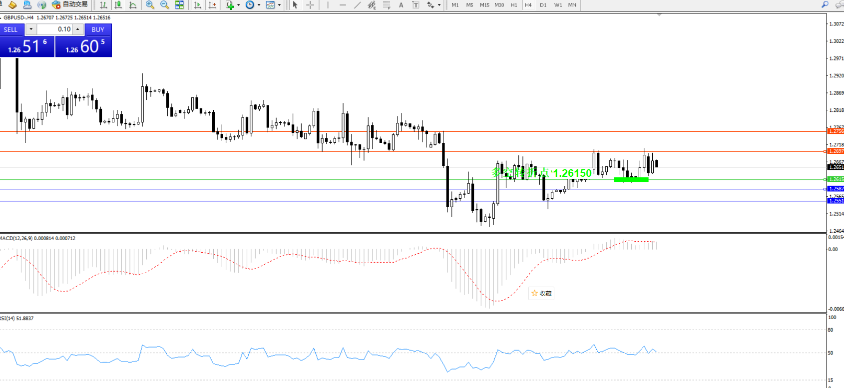 交易策略:1.26150上方看涨,目标1.26977、1.27565
