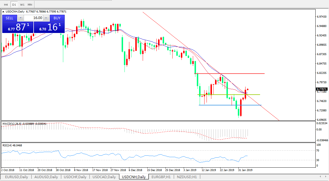 交易策略: 6.7750之上,看涨,目标价位为6.8195,然后为6.8400