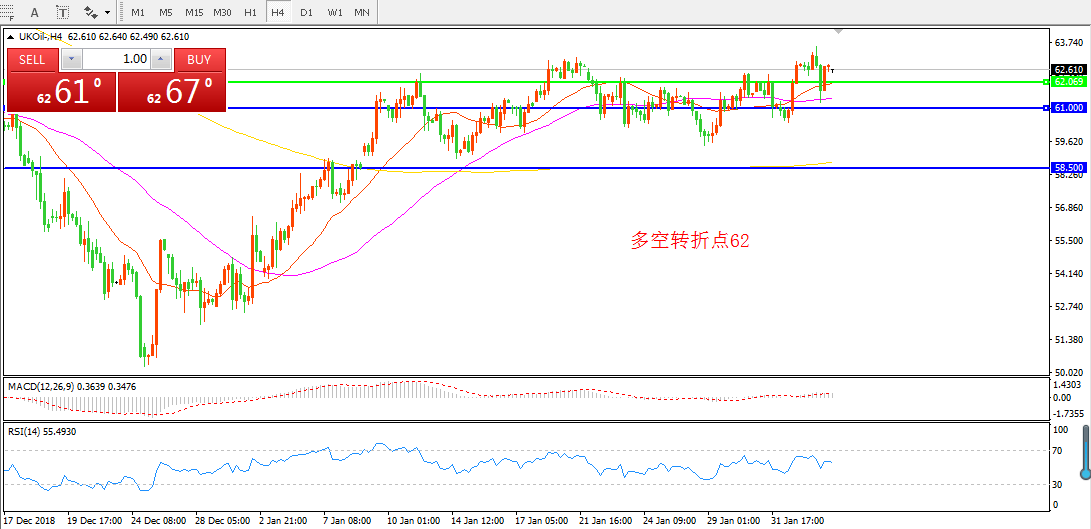交易策略:在62.00之上看涨,目标66.00    68.00