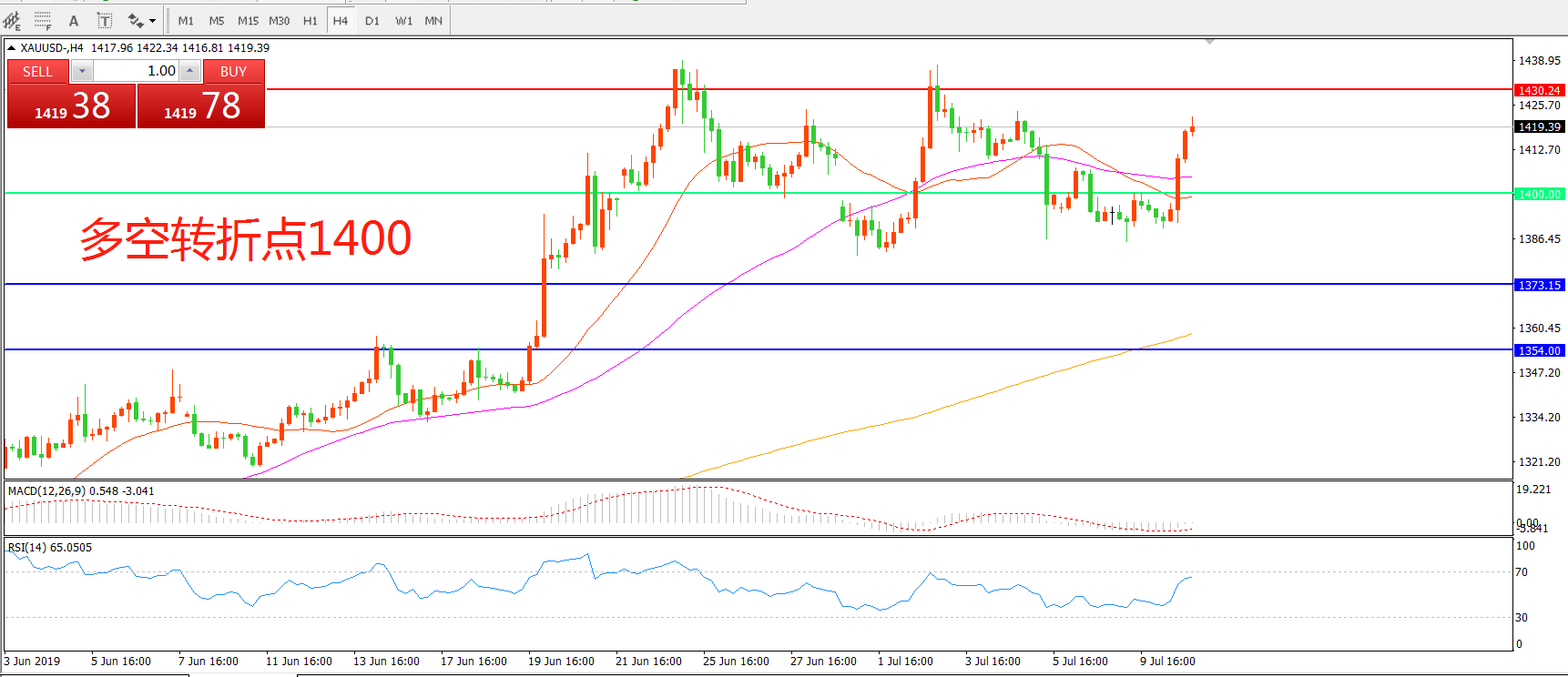 交易策略:在1400.00之上看涨,目标1430.00 1490.00