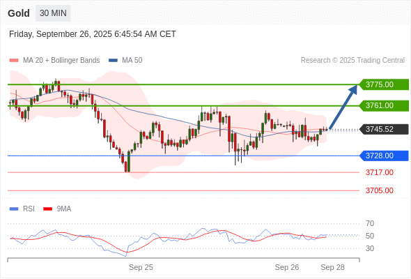 在 3728.00 之上,看涨,目标价位为 3761.00 ,然后为 3775.00 。