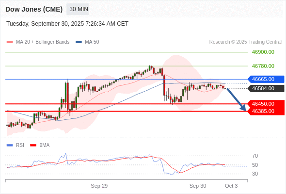在 46665.00 之下,看跌,目标价位为 46450.00 ,然后为 46385.00 。