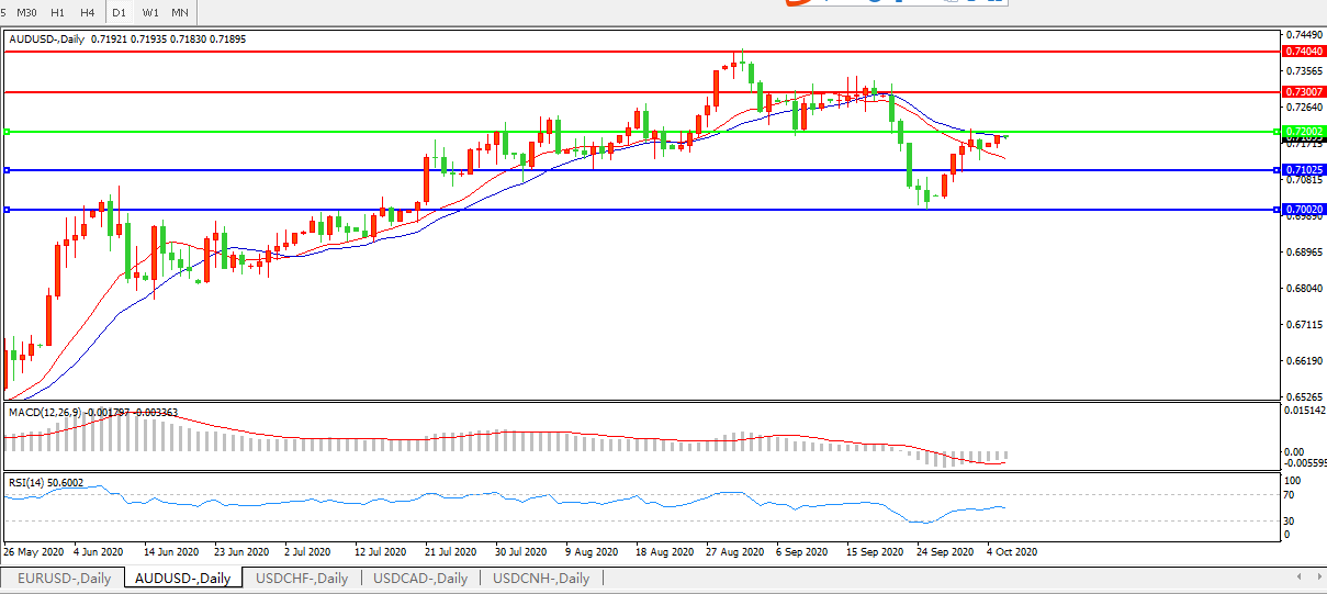 备选策略:0.7200上方看涨,目标0.7300、0.7400