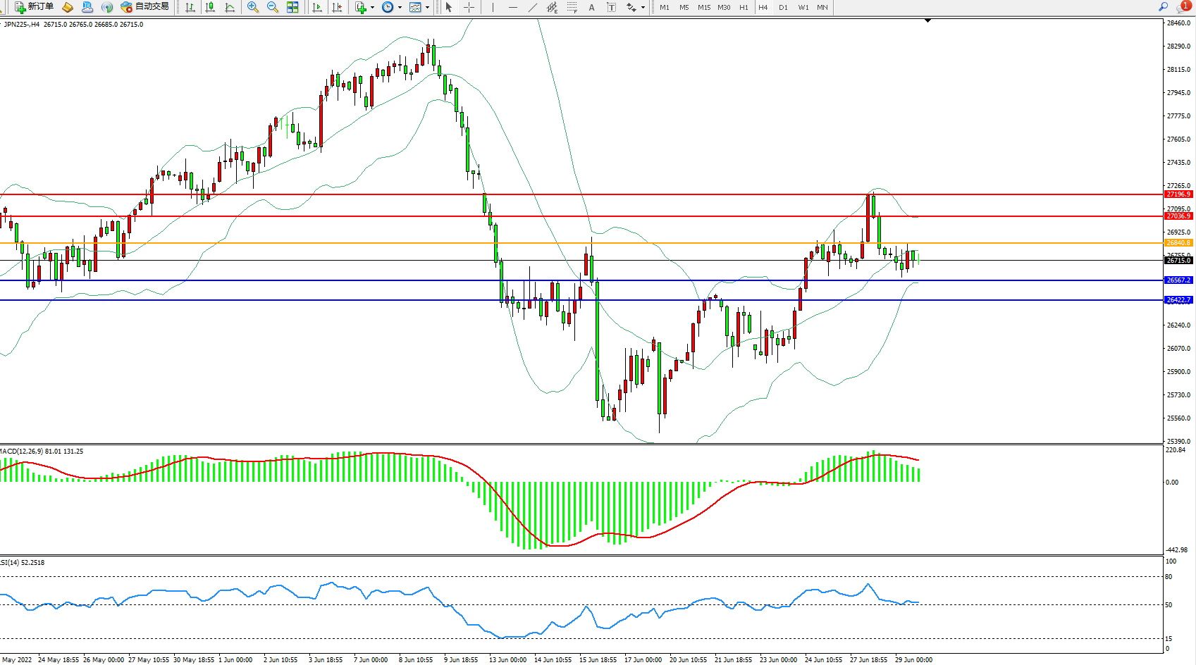 日经225指数6月29日(周三)收盘下跌277.97点,跌幅1.03%,报26771.50点。本政府官员:日本6月消费者信心指数录得32.1,为2021年1月以来最低。