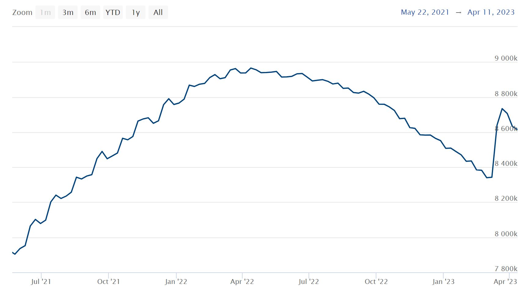 同时为了避免系统性金融危机,美联储救助区域银行的一系列流动性支持工具,也令缩表的进程遭遇尴尬的反复。