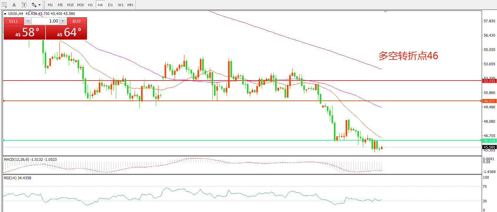交易策略:在46.00之下看跌,目标42.00 38.00